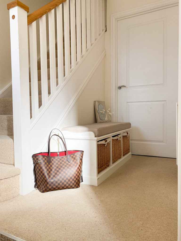 For loose items like scarves, gloves, and mail, use decorative baskets or bins. These can be placed on shelves or tucked under a bench to keep clutter at bay.